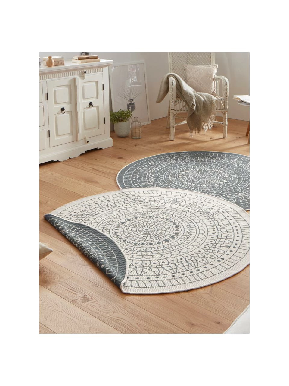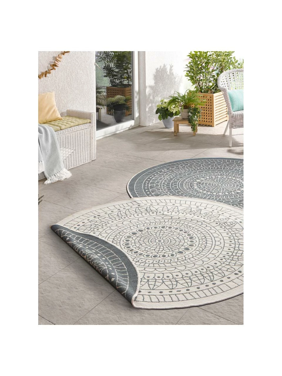Tapis rond réversible d’intérieur et d’extérieur, tissé mécaniquement